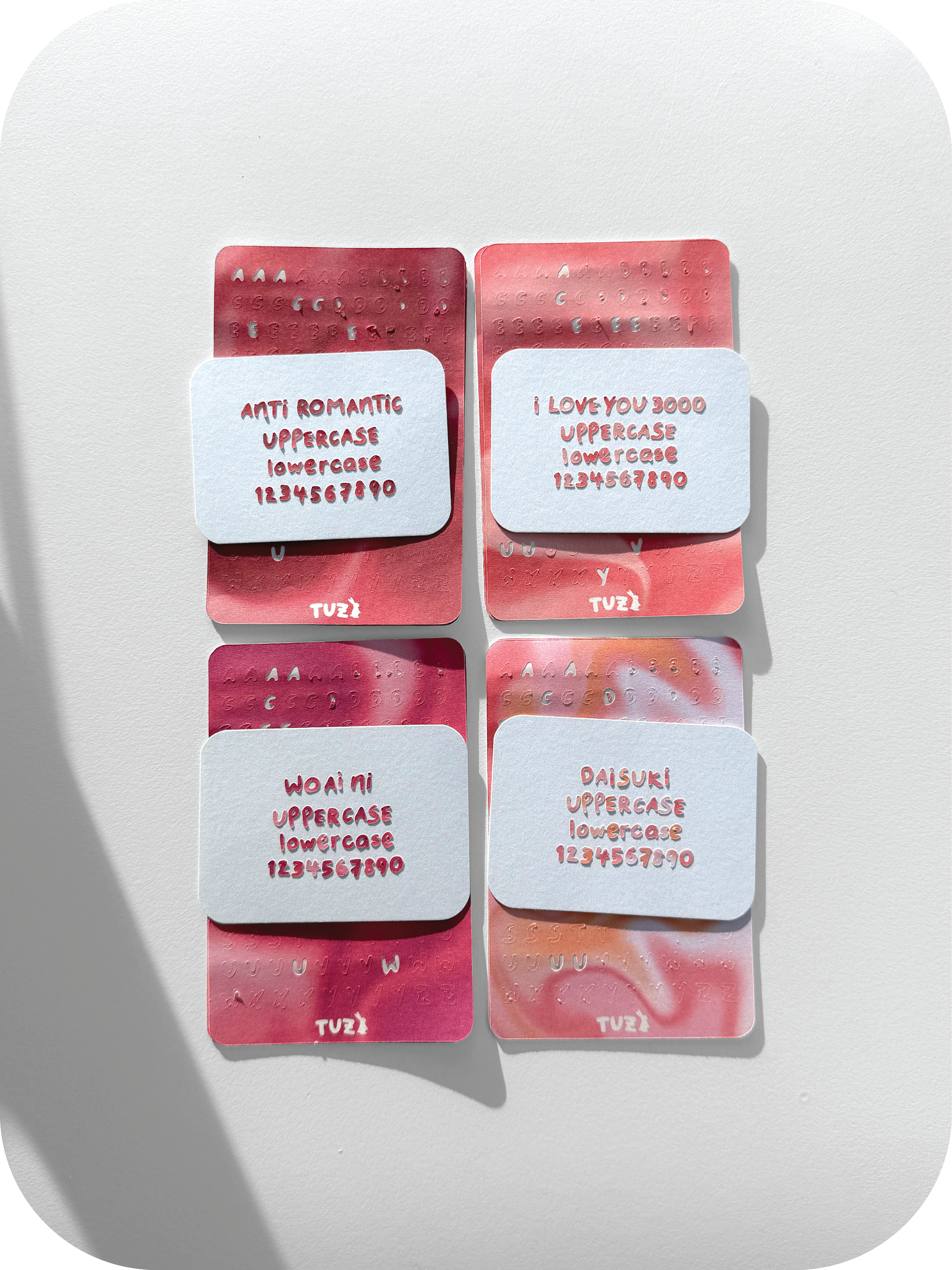 all the new vday ‘lovey dovey’ palettes — in the tuzi letters cuts! 💌🥰 you can get any of the four palettes in the tuzi letters uppercase, lowercase, and numbers cuts 💖 this collection will only be available in this shop update (february 2026 market) so do adopt any of the cuts/palettes if you are interested as they will not be restocked! 💞